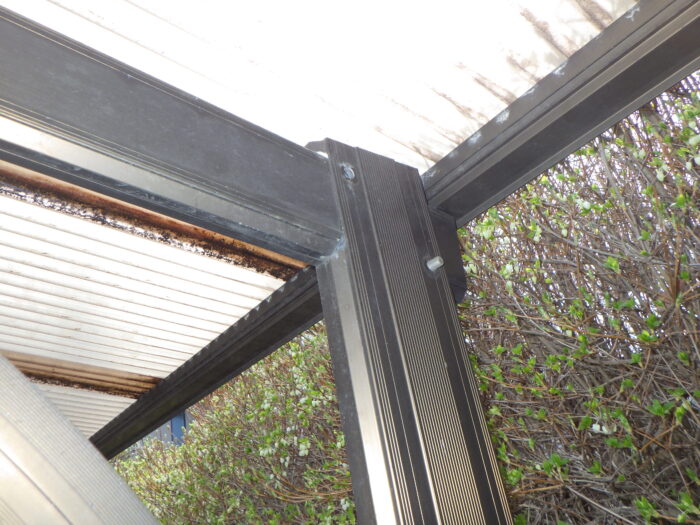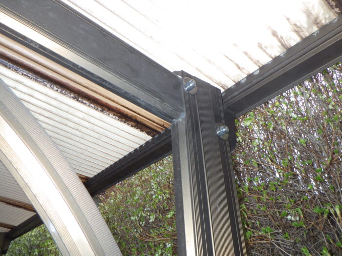 ≪アルミカーポート躯体ボルト交換、修理工事≫アルミカーポートの躯体のボルト交換や修理は、強風や積雪による歪み・破損を防ぐために重要なメンテナンスです。ボルトの錆び、緩み、欠損は、放置すると構造全体が弱くなり倒壊の原因となるため早めの修理が必要になります。