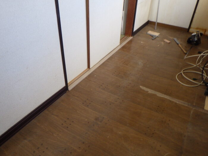 ≪フローリング張替≫フローリングリフォームには、重ね張りと貼り替えの2種類の方法があります。ARASAWAでは、一般的なフローリング張替工事も、既存の床に二重張りする事で解体撤去のコスト費用を抑え、二重になる事で強度を高める施工方法をおすすめ致します。