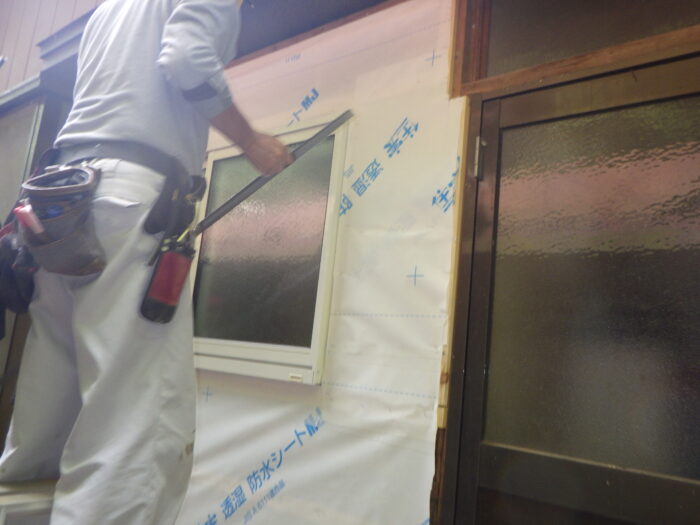 ≪透湿防水シート貼≫ 透湿防水シートとは、湿度は通し水分は遮断する機能性シートです。 雨水や結露を遮断する一方で、室内の湿気は屋外に逃がします。 透湿防水シートは主に住宅建材の結露や雨漏り防止の用途などで活用されています。