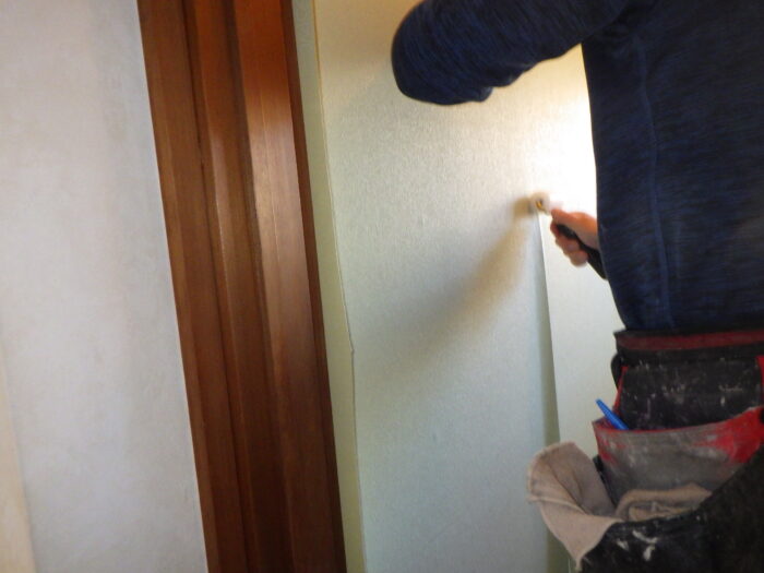 ≪天井・壁クロス貼替≫クロスリフォーム壁紙の選び方ですが貼替の場合は、厚めのクロス紙製品を選ぶことが大事です。クロス紙を貼る場合も、通常の糊付けより下紙とクロスを密着させるため多めに糊付けするのがポイントです。