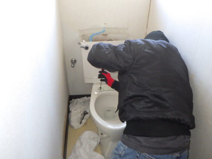 ≪便器撤去≫まずは、止水栓を締めてから水を流して、タンク内を空にし便器の中の水もポンプで吸い取ります 。今回は、便器の型が古くなり、新しくTOTO製ウォシュレット一体型便器の交換を行います。安価でオート洗浄、暖房便座、多機能の便器でおすすめです。