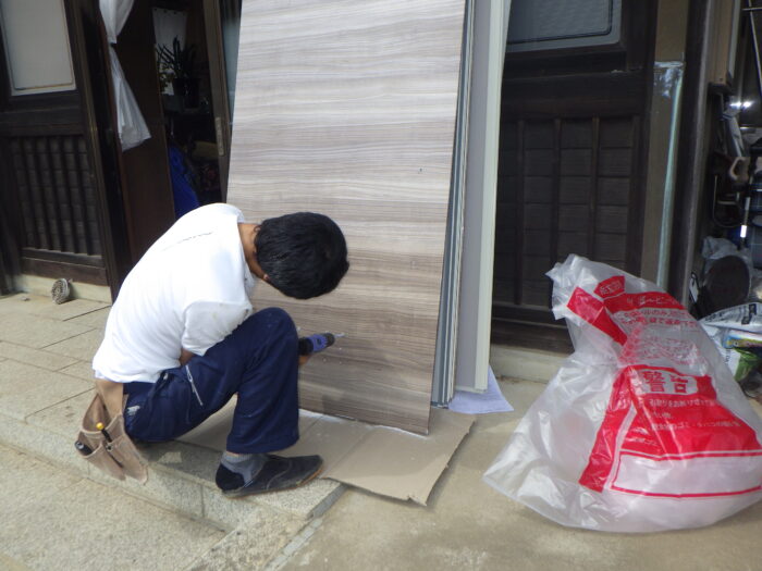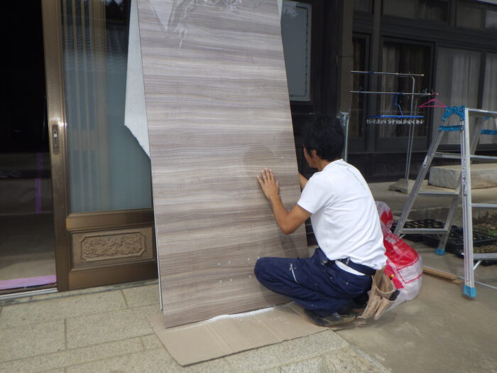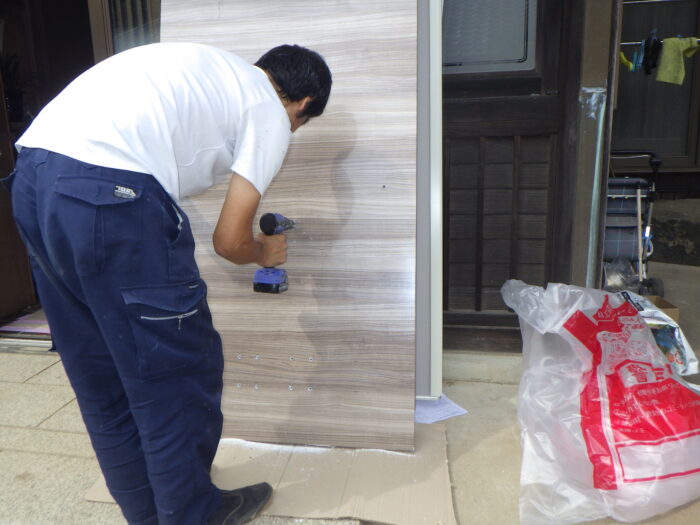 ≪ユニットバス壁加工工事≫ユニットバスの壁材は、予め取り付ける前に手摺やシャワー水栓、物入などの穴あけをします。仕事がスムーズにいく事と鉄くず、鉄粉による貰い錆びの原因になるからです。