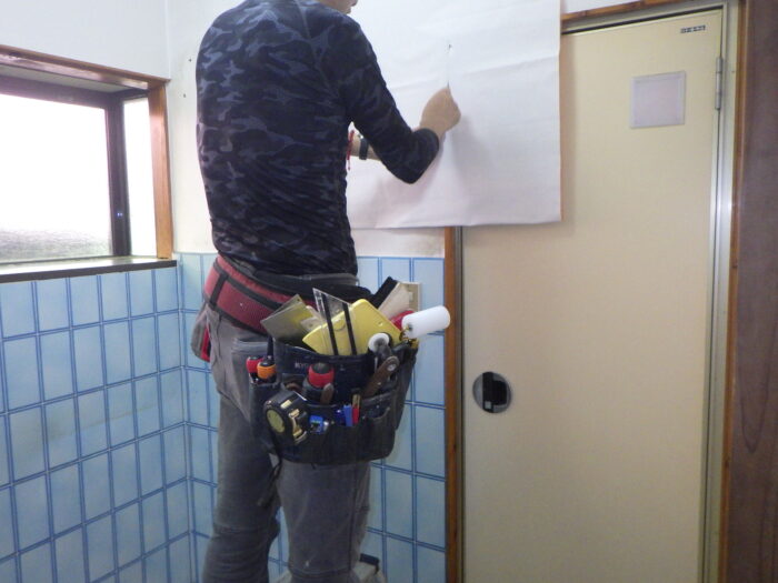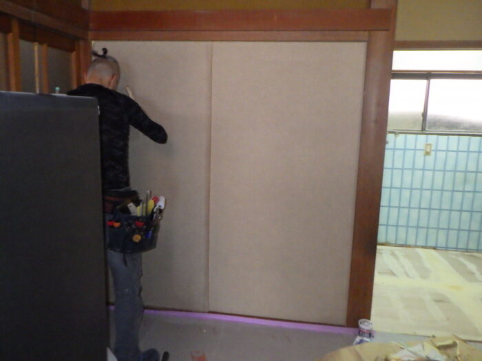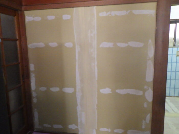 ≪パテ下地調整≫下地処理というのは壁紙を張る時に一番重要な作業になり、大切な工程で丁寧に仕上げなければ、仕上がりが悪くなります。 石膏ボードの継ぎ目があるのが手で触っても分からない位のレベルにします。