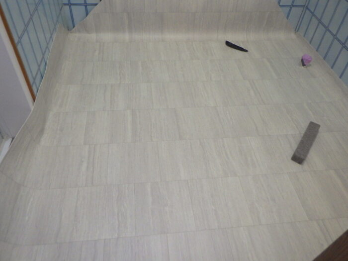 ≪クッションフロア張替下地処理≫クッションフロアや長尺シート・タイルフロアなどの床材を張り替えるには、下地処理や下地調整を行う必要があります。この工程を丁寧に行わなければ、施工が上手くいかず凹凸になってしまいます。
