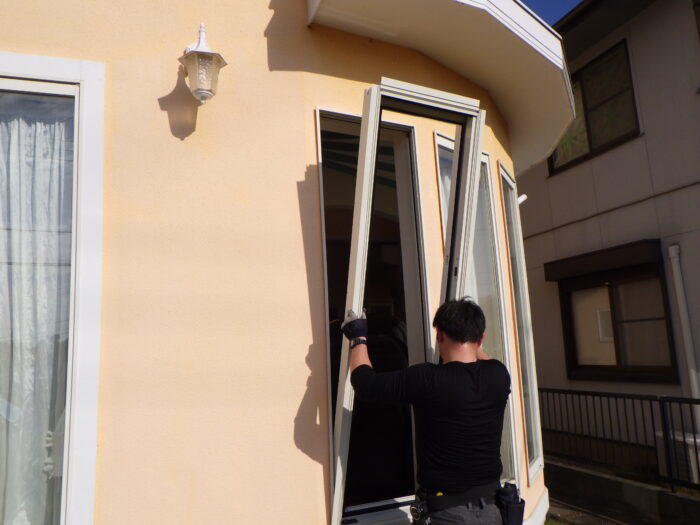 ≪両開き窓を引き違い戸に交換工事≫両開きドアの動きが悪くなったり、シングルガラスで寒さや暑さ、騒音が気になったり、そんな時に簡単リフォーム窓のリプラス工事を行います。