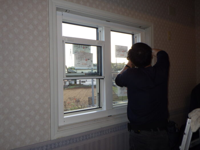 ≪上げ下げ窓交換工事≫上げ下げ窓の動きが悪くなったり、シングルガラスで寒さや暑さ、騒音が気になったり、そんな時に簡単リフォーム窓のリプラス工事を行います。