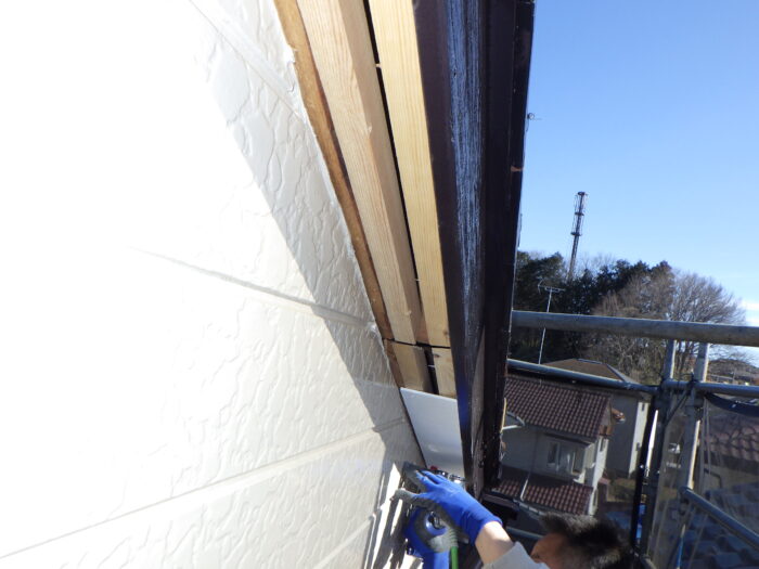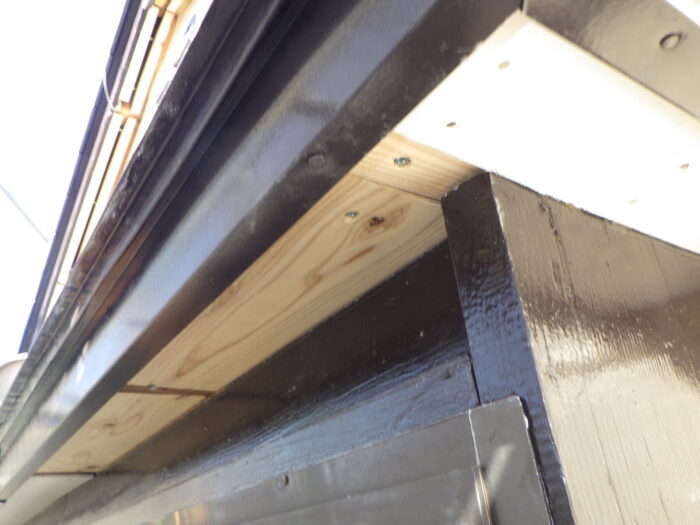≪軒天撤去≫軒天が傷んだ場合に修理方法としては、カバー工法と既存の軒天ボードを剥す張替工事の2種類になります。カバー工法は、既存の軒天ボードを撤去する必要がなく取り付けることができ、工期もゴミも少なく済みます。ただし、既存の下地によってカバー工法をできない場合があります。