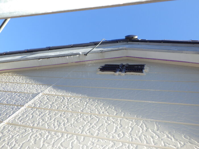 ≪軒天ボード張≫軒天の材質には、ケイカル板、カラーベニヤ、スパンなどがあります。 ケイ酸カルシウム板は、不燃ボードです。軒天ボードの種類により 耐火性、耐水性、