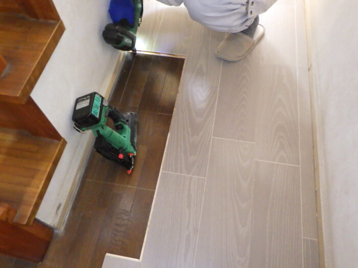≪塩ビフロア・フロアタイル≫ジュータンからタイルフロアへ張替工事。「ロイヤルウッド・ロイヤルストーン」は、リアルな表情と多彩なデザインを取り揃えたプリントタイルです。様々な住宅空間で貼り映えする色柄が見つかります。