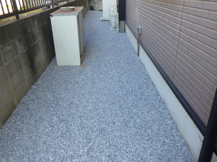 ≪防草シート・砂利≫防草シートと砂利を組み合わせる事で防草シートを敷いただけの場合よりも劣化しにくいという効果があります。したがって防草シートの劣化を早める直射日光を防ぎ、また風などでのめくり上がりを防止します。
