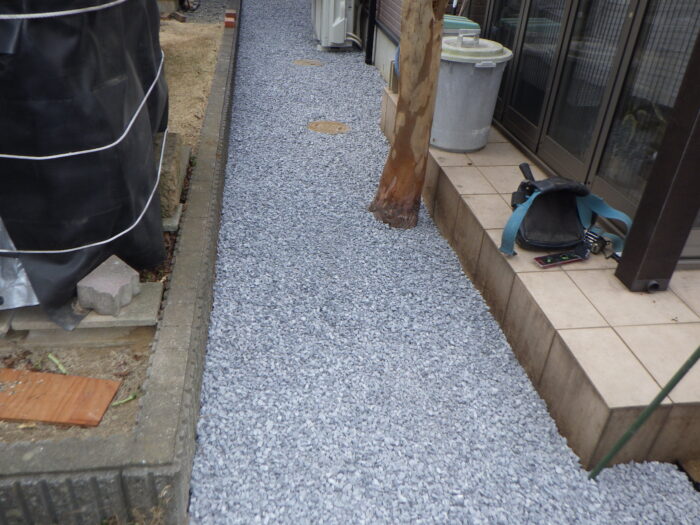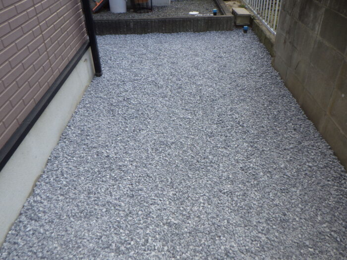 ≪防草シート・砕石敷き込み工事≫防草シート敷き込み工事・砕石敷き込み工事の手順としては、雑草がある場合やいらない植木をは出来るだけ除去し鋤取りを行います。そして防草シートを敷き込み砕石敷き込み工事をすれば完成です。