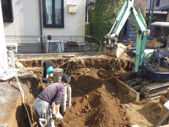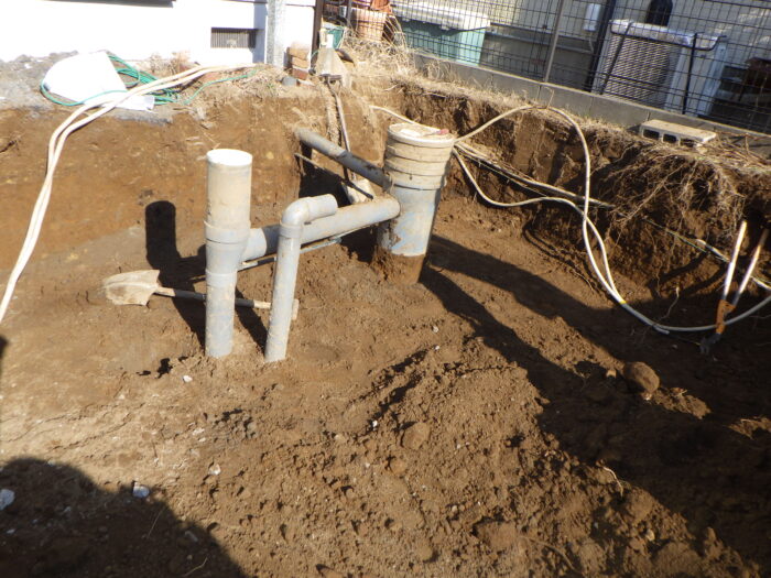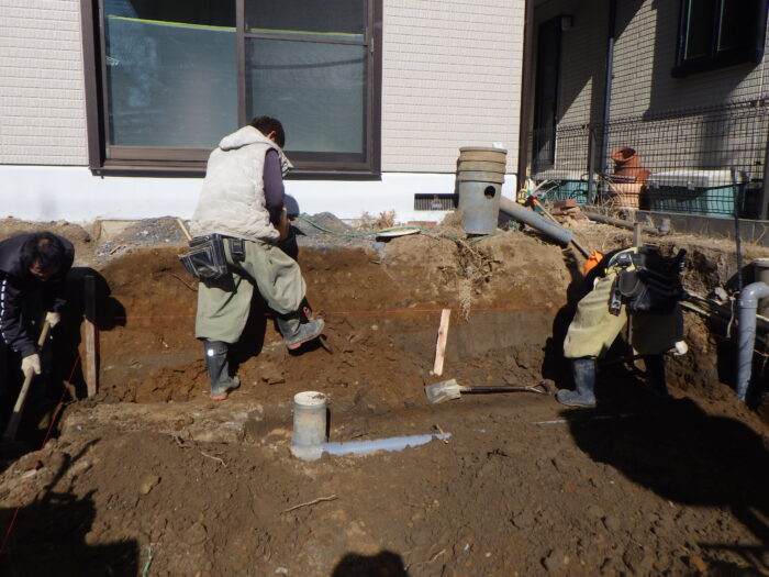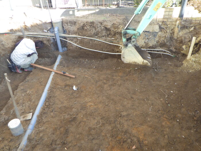 ≪汚水管・給排水工事・電気配線工事≫駐車場拡張では、汚水桝や給排水管の工事が必要になってきます。その他としては、電気配線やインターネット、その他ケーブルが地中の場合に改修が必要になります。給水や電気配線より気を使うのが汚水管や排水管で勾配を取らないといけないので少し難しいです。